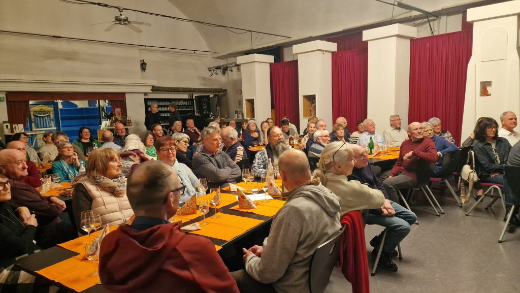 Wie es sich für einen Weinbergs-Verein gehört, wird das Jahr mit einer Weinprobe eröffnet im Rahmen der ein kundiger Sommelier durch acht badische Weine und einen Sekt führt. Die werden betrachtet, gerochen, beschrieben, die Rebsorte und der Ausbau werden gewürdigt und dem Kellermeister und Winzer wird die Referenz erwisen („Ein sehr netter Kerl und sehr kompetenter Winzer!“) – es sollen wohl auch vereinzelt Weine getrunken worden sein …