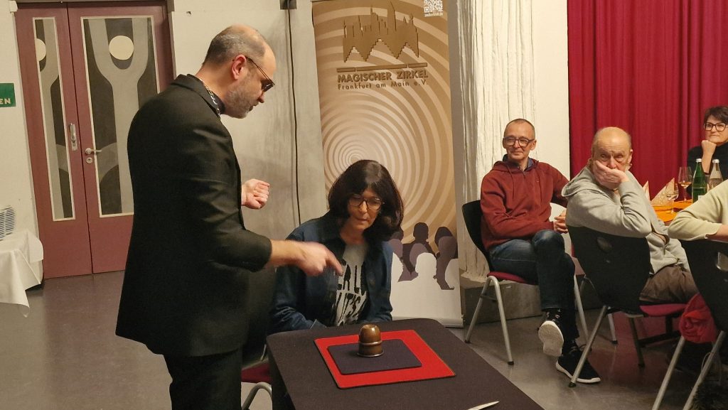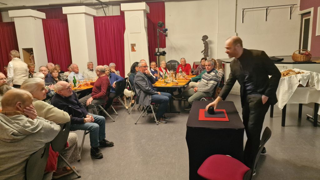 (21. Januar 2026) Schon mal erlebt? Man sieht sich erst das zweite Mal, aber es fühlt sich an, als kenne man sich schon – naja, nicht ewig, aber schon lange. Ging mir so bei unserem Auftritt für den Verein Historischer Weinberg Mainaschaff. Den hatten wir anläßlich unserer ersten Mikromagica im Alten Rathaus in Mainaschaff kennengelernt. Dass man den Lokalmatador Florian Schädlich begrüßt, wie einen alten Bekannten nimmt so recht nicht Wunder, denn für viele der Gäste ist er ja genau das: Die haben den Florian noch mit der Rassel um den Tannenbaum toben gesehen. Aber auch ich werde fast schon unanständig freundlich behandelt, ich werde mehrfach gefragt, ob ich denn ein Wasser trinken wolle, mit viel oder wenig Kohlensäure, warm oder kalt, aus einem runden Glas oder einem eckigen, lieber jetzt oder eher später, …, und dann wiederholt sich das Prozedere nach Eröffnung des Buffets …