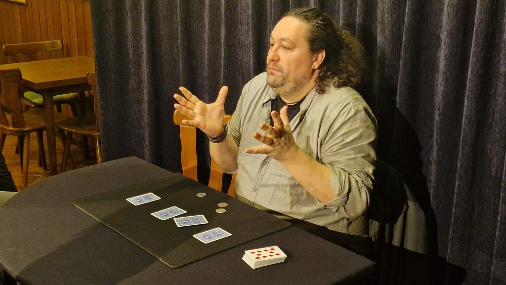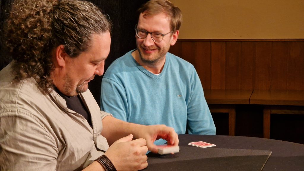 (19. Januar 2026) Spanier haben was los, wenn’s um Kartenzauberei und close-up im Allgemeinen geht, das weiß man ja. Namen wie Juan Tamariz oder Dani DaOrtiz sagen jedem halbwegs Eingeweihten etwas, der Name Miguel Ángel Gea nicht unbedingt – und das ist ewig schade! Der Mann gehört sicher zu denen, die was los haben – der hat soviel los, dass manche Teilnehmer des Seminars hinterher sagen: „Gut, da kann ich jetzt aufhören mit zaubern, das erreiche ich nie.“. Ich gehöre auch zu denen, die das – im Scherz – sagen, aber die eigentliche Botschaft eines Abends, wie diesem ist natürlich: „Schau her: Da kann es hingehen, wenn man die entsprechende Arbeit und Passion reinsteckt.“. Hört der Hobbyaquarellist mit dem Malen auf, weil es einen Vincent van Gogh gegeben hat? Nein, natürlich nicht, aber er strengt sich vielleicht ein wenig mehr an, weil es ihn gegeben hat.